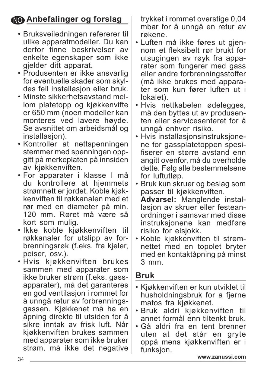 -- Le filtre à charbon actif ne peut être ni lavé ni régénéré et il doit être remplacé environ tous les 4 mois de fonctionnement ou plus souvent 12 • Compruebe que la tensión de alimentación corresponda a la indicada en la placa de datos colocada en el interior de la campana. • Para los aparatos de Clase I, compruebe que la red eléctrica doméstica tenga una conexión a tierra adecuada. Conecte la campana extractora al conducto de humo a través de un tubo con un diámetro mínimo de 120 mm. La trayectoria del humo debe ser lo más corta posible. • No conecte la campana extractora a los conductos de humo que transportan humo de combustión (ej. calderas, chimeneas, etc.). • Si la campana extractora se utiliza en combinación con aparatos no eléctricos (por 18