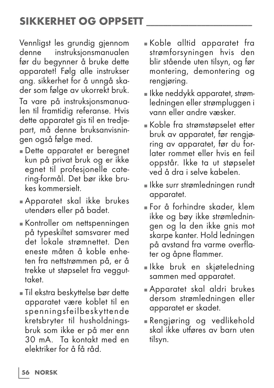 Conservez le manuel d'utilisation car vous pourriez en avoir besoin ultérieurement. Dans le cas où cet appareil change de propriétaire, remettez également le manuel d'utilisation au nouveau bénéficiaire. Le présent appareil est destiné à un usage domestique privé uniquement et ne saurait convenir à une utilisation professionnelle en restauration. Il ne doit pas être utilisé à des fins commerciales. Évitez d'utiliser l'appareil à l'extérieur ou dans la salle de bain. Assurez-vous que la tension de secteur figurant sur la plaque signalétique correspond à votre alimentation secteur locale. Le seul moyen de déconnecter l'appareil du secteur consiste à débrancher la prise.