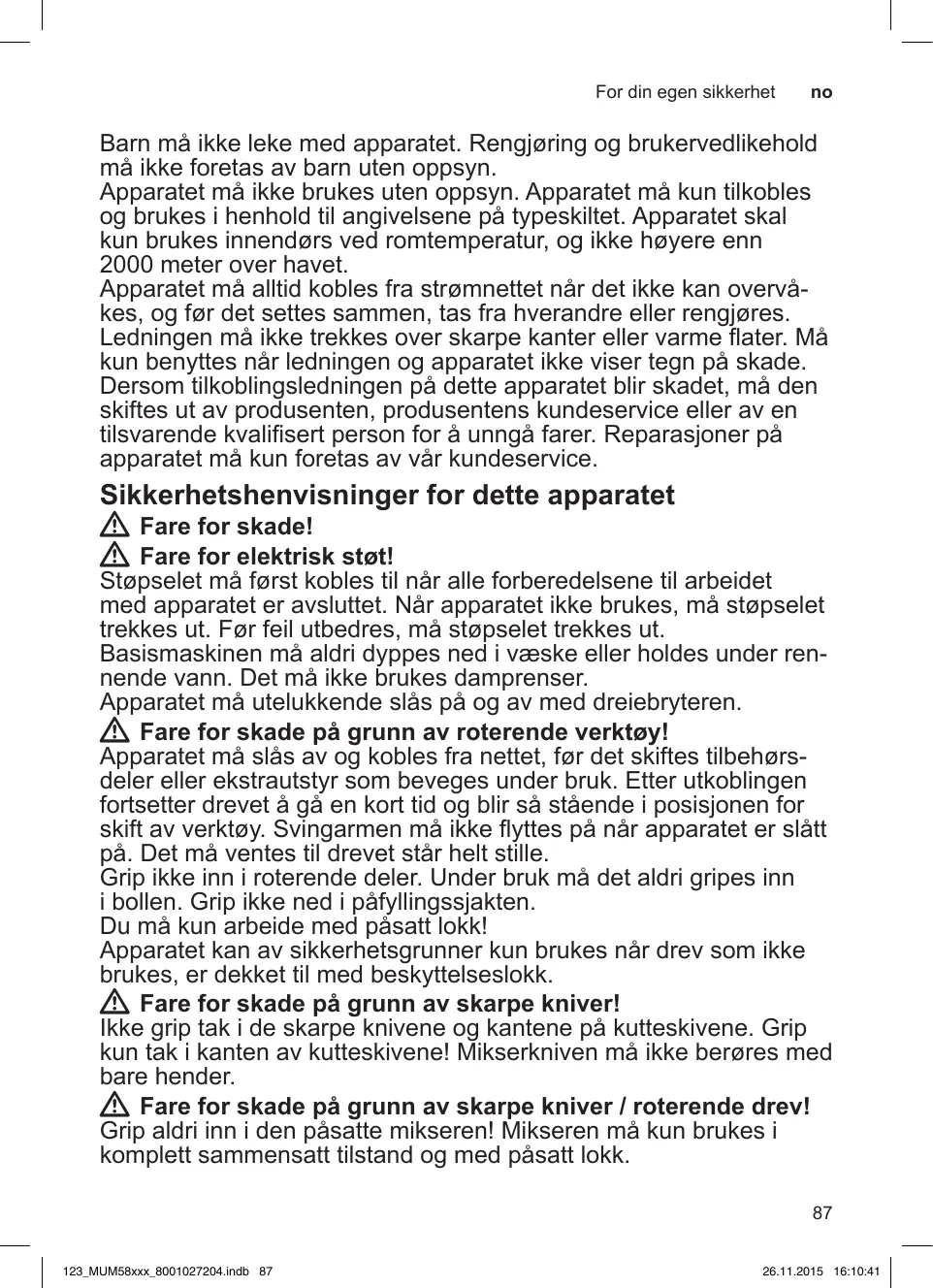 Téléchargez la notice de votre Kjøkkenmaskin au format PDF gratuitement ! Retrouvez votre notice MUM58235 - MUM58231 - BOSCH et reprennez votre appareil électronique en main. Sur cette page sont publiés tous les documents nécessaires à l'utilisation de votre appareil MUM58235 - MUM58231 de la marque BOSCH.