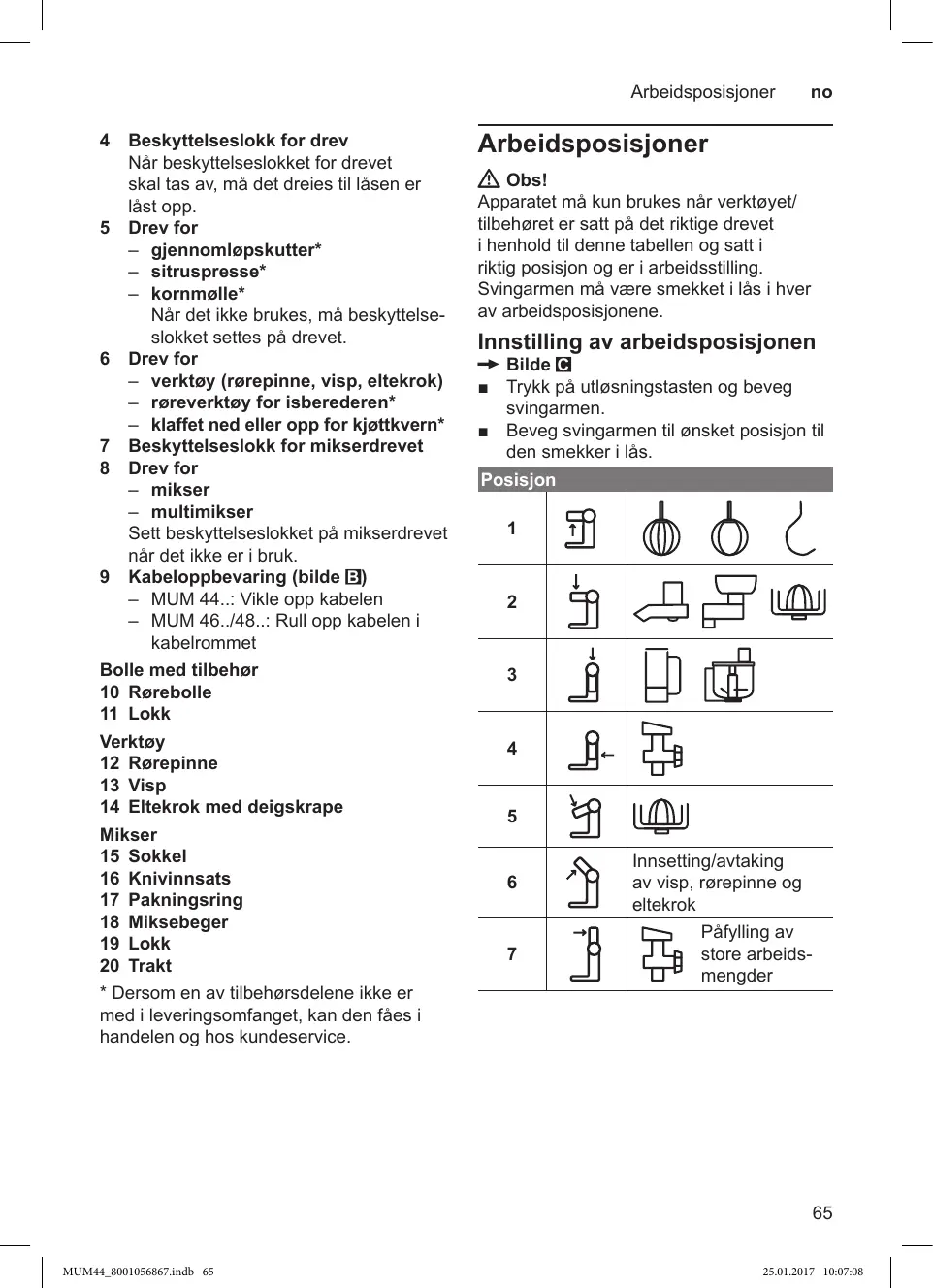 Tilbehgret til apparatet MUM 45.. egner seg ogsà for apparatene MUM44../46../48..