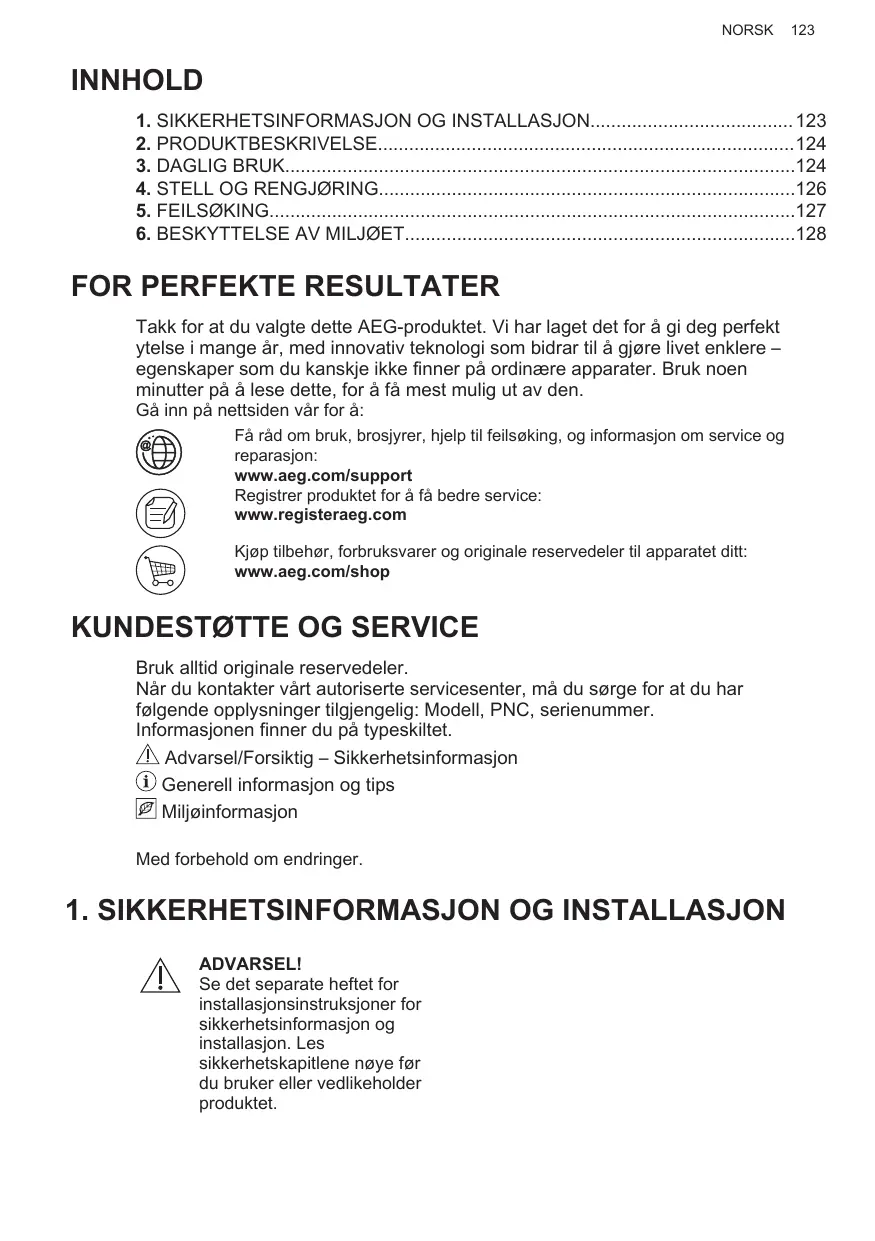 Enregistrer votre produit pour un meilleur service : www.registeraeg.com Acheter des accessoires, consommables et pièces de rechange d’origine pour votre appareil : www.aeg.com/shop