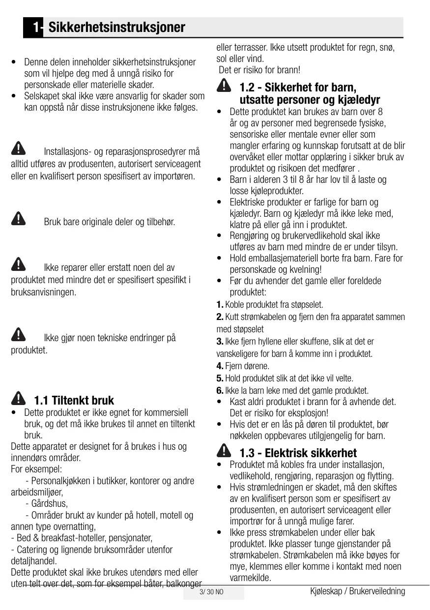 1- Sikkerhetsinstruksjoner 1- Sikkerhetsinstruksjoner