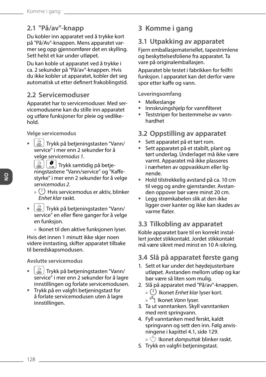 Tryck på knappen för vatten/service i längre än 2 sekunder.