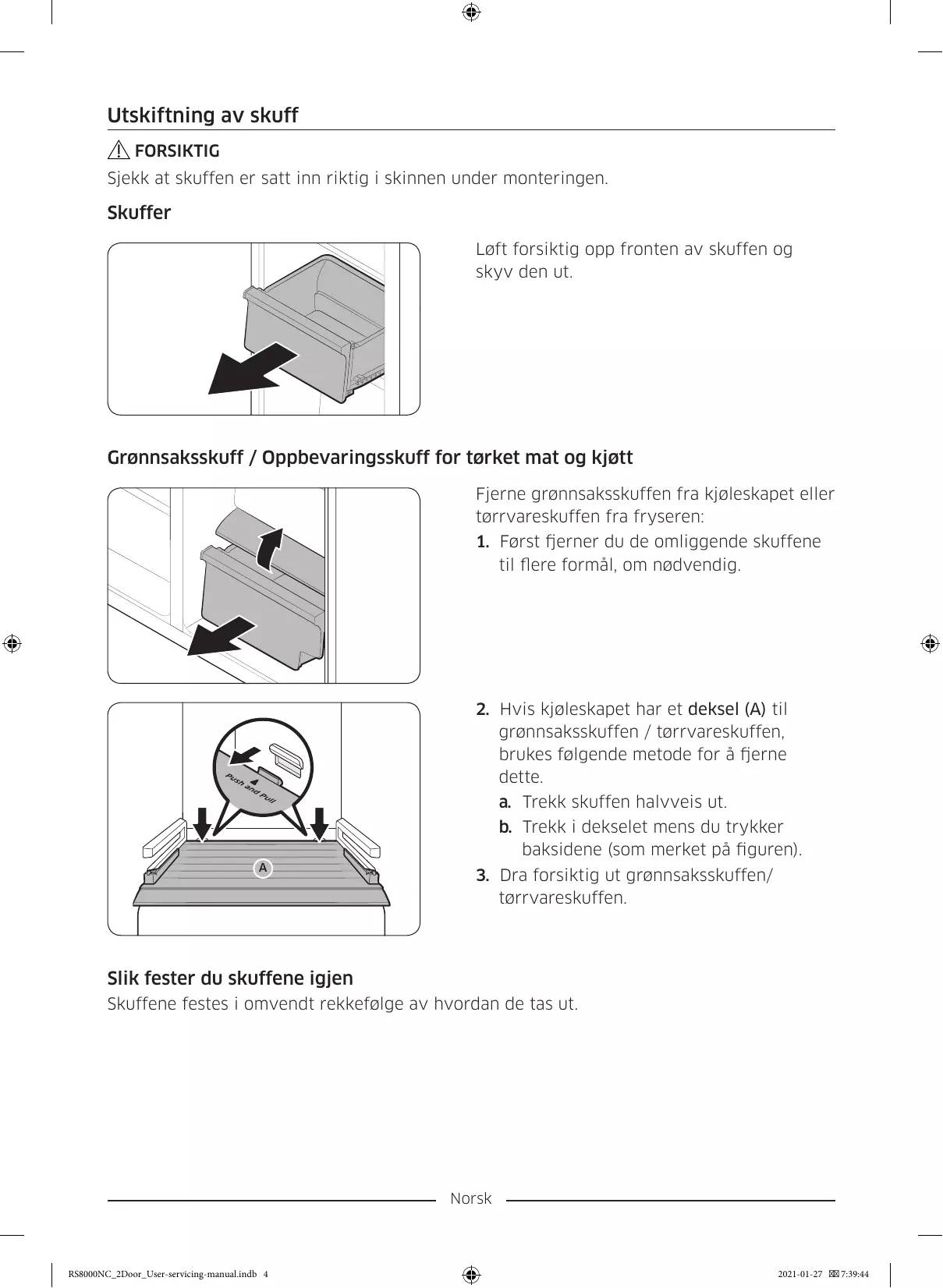 Téléchargez la notice de votre Kjøleskap au format PDF gratuitement ! Retrouvez votre notice RS67A851059 - SAMSUNG et reprennez votre appareil électronique en main. Sur cette page sont publiés tous les documents nécessaires à l'utilisation de votre appareil RS67A851059 de la marque SAMSUNG.