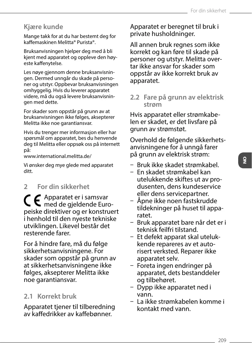 Toute autre utilisation est considérée comme non réglementaire et peut provoquer des dommages corporels et matériels. Melitta ne répond pas de dommages consécutifs à une utilisation non réglementaire.