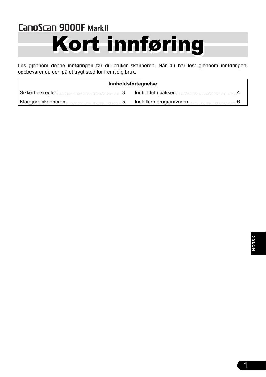 Kort innføring Les gjennom denne innføringen før du bruker skanneren. Når du har lest gjennom innføringen, oppbevarer du den på et trygt sted for fremtidig bruk.
