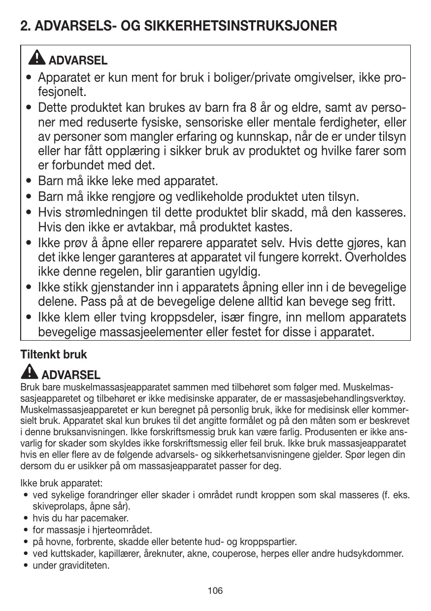 • N’utilisez pas l’appareil si vous portez un stimulateur cardiaque. • N’utilisez en aucun cas l’appareil pour un massage au niveau du cœur. • N’utilisez jamais l’appareil sur des zones de la peau et du corps enflées, brûlées, irritées ou blessées. • N’utilisez pas l’appareil en cas de déchirures, capillaires, varices, acné, couperose, herpès ou autres maladies cutanées. • N’utilisez pas l’appareil pendant une grossesse. • N’utilisez pas l’appareil au niveau de la tête. • N’utilisez pas l’appareil sur le visage (yeux), sur le larynx ou sur d’autres zones du corps particulièrement sensibles. • N’utilisez pas l’appareil sur la colonne vertébrale. • N’utilisez pas l’appareil sur les parties intimes. • N’utilisez jamais l’appareil lorsque vous dormez. • Assurez-vous de ne pas placer l’appareil de massage directement sur les os. • N’utilisez pas l’appareil sur des animaux. • N’utilisez pas l’appareil après la prise de médicaments ou d’alcool (en raison de l’altération de la perception). • N’utilisez pas l’appareil dans un véhicule.