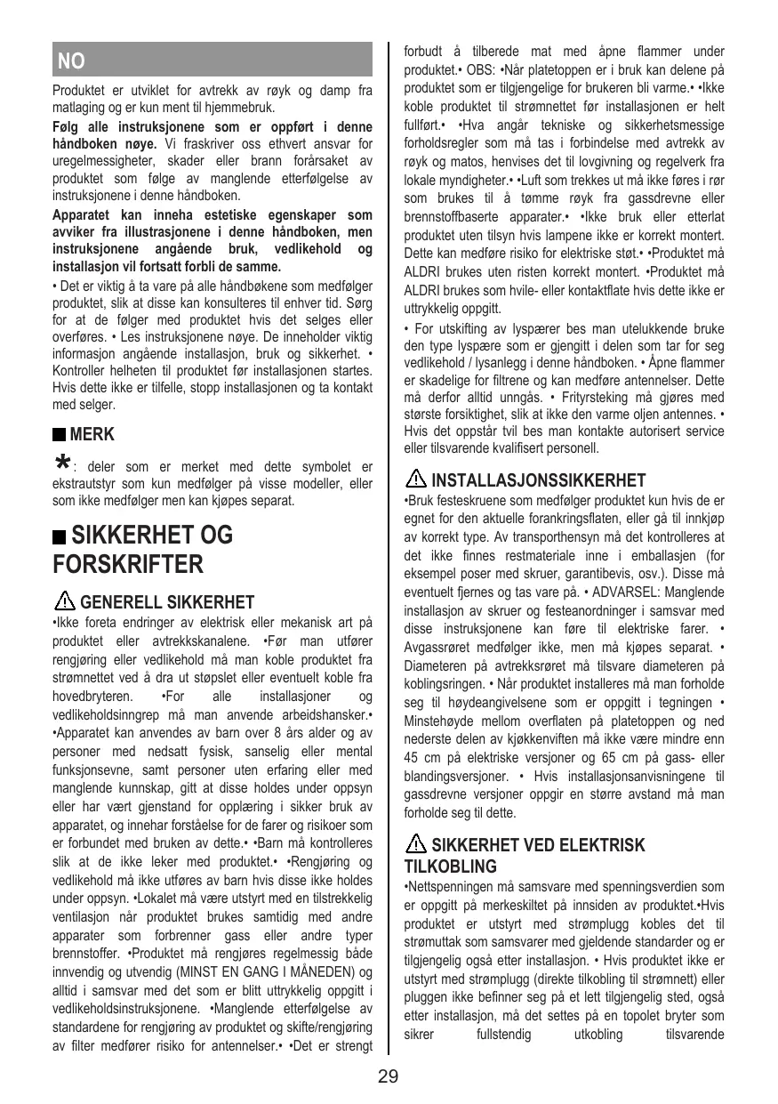 FR Le produit est conçu pour l’aspiration des fumées et des vapeurs de cuisson et est destiné au seul usage domestique.