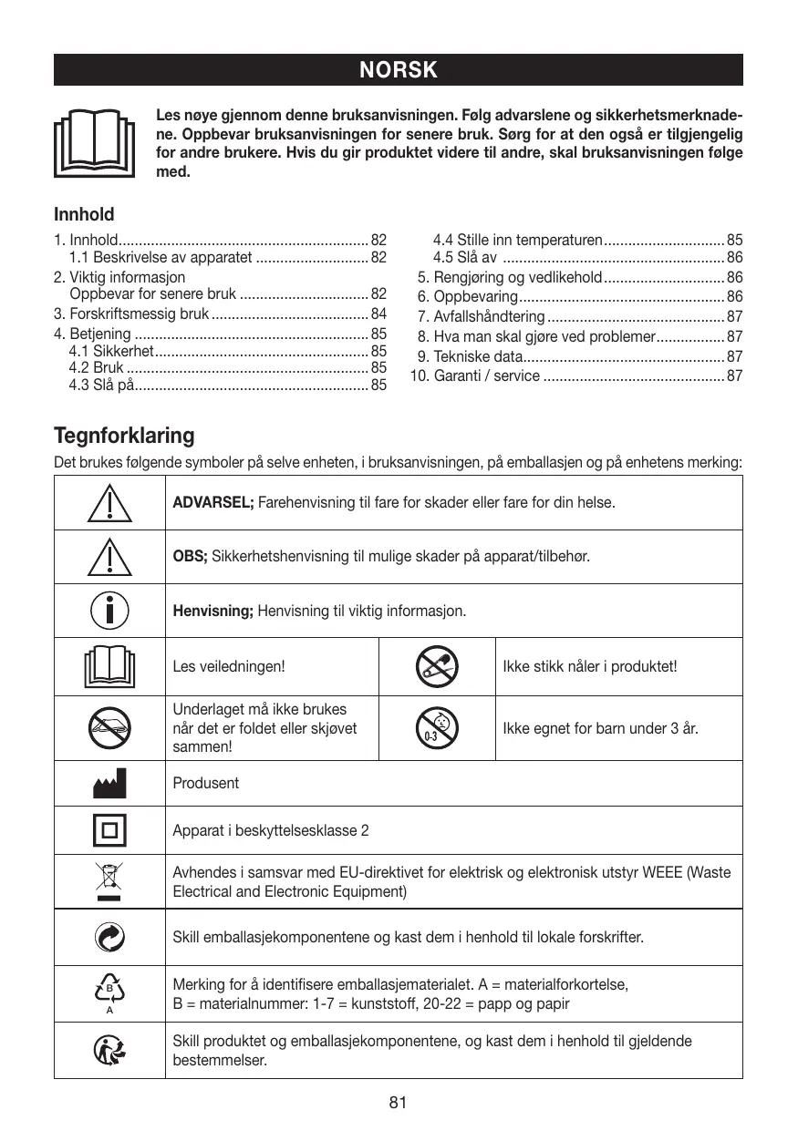 + Ce chauffe-matelas peut être utilisé par les enfants à partir de 8 ans ainsi que les déficients physiques, sensoriels ou mentaux et les per- sonnes ayant peu de connaissances ou d'expérience à la condition qu'ils soient surveillés ou sachent comment l'utiliser en toute sécurité et en comprennent les risques.
