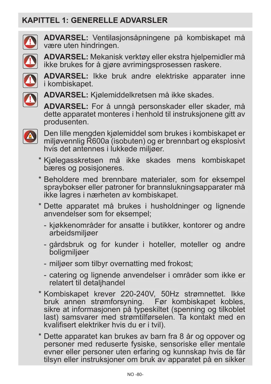à température ambiante et étre arrangée de sorte à assurer une crculaion d'air suffisante dans le compartiment réfrigérateur.