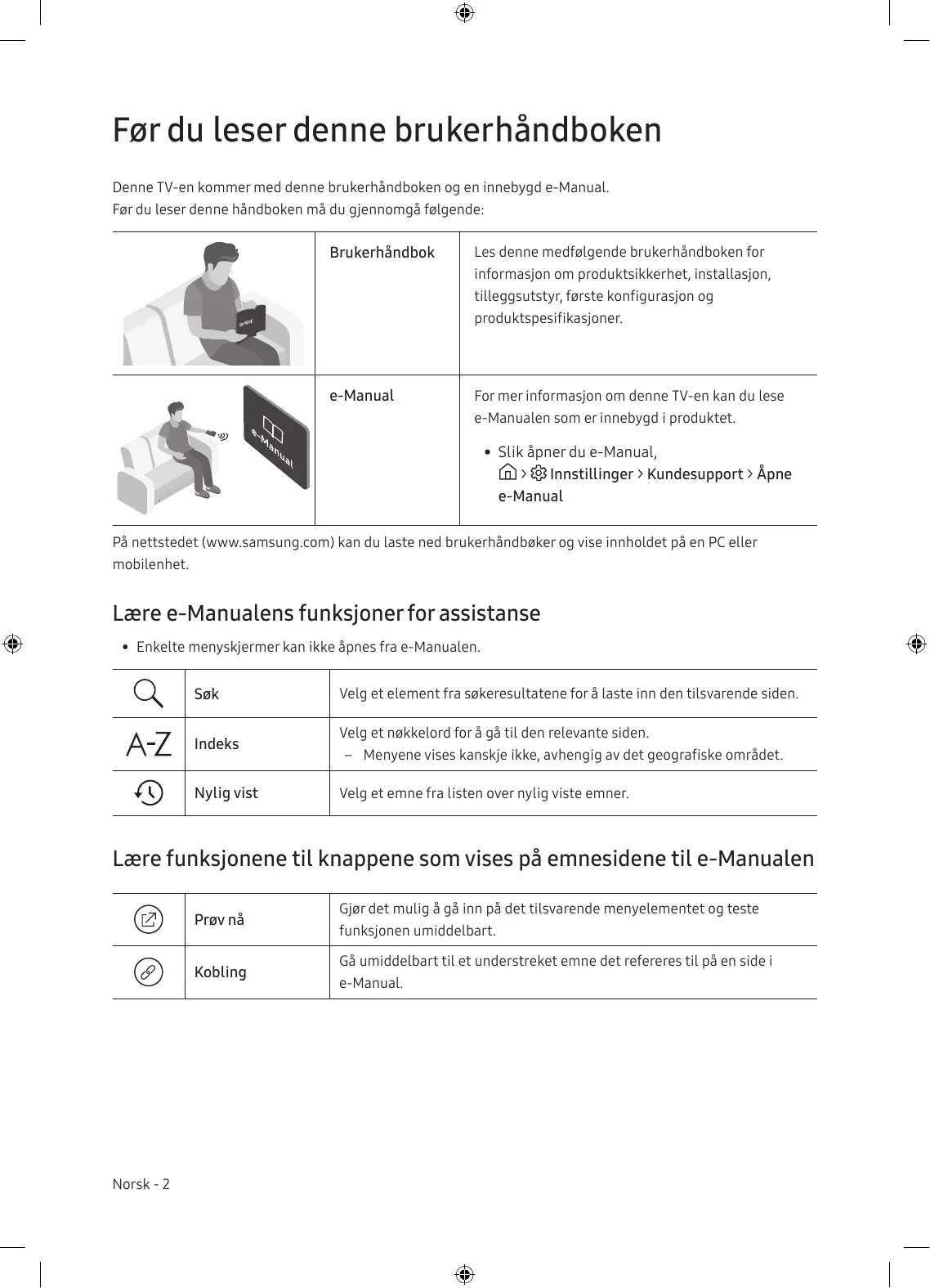 - Figurene ogillustrasjonene i denne brukerveiledningen er bare til referanse og kan avvike fra det faktiske produktutseendet. Produktdesign og -spesifikasjoner kan endres uten forvarsel. SUS-spräk (russisk, ukrainsk, kasakhisk) er ikke tilgjengelige for dette produktet som falge av at det er produsert for kunder i EU-omrädet. Utstyr som er koplet til beskyttelsesjord via nettplugg og/eller via annet jordtilkoplet utstyr — og er tilkoplet et kabel-TV nett, kan forärsake brannfare. For à unngä dette skal det ved tilkopling av utstyret til kabel-TV nettet installeres en galvanisk isolator mellom utstyret og kabel- TV nettet. Norsk -4