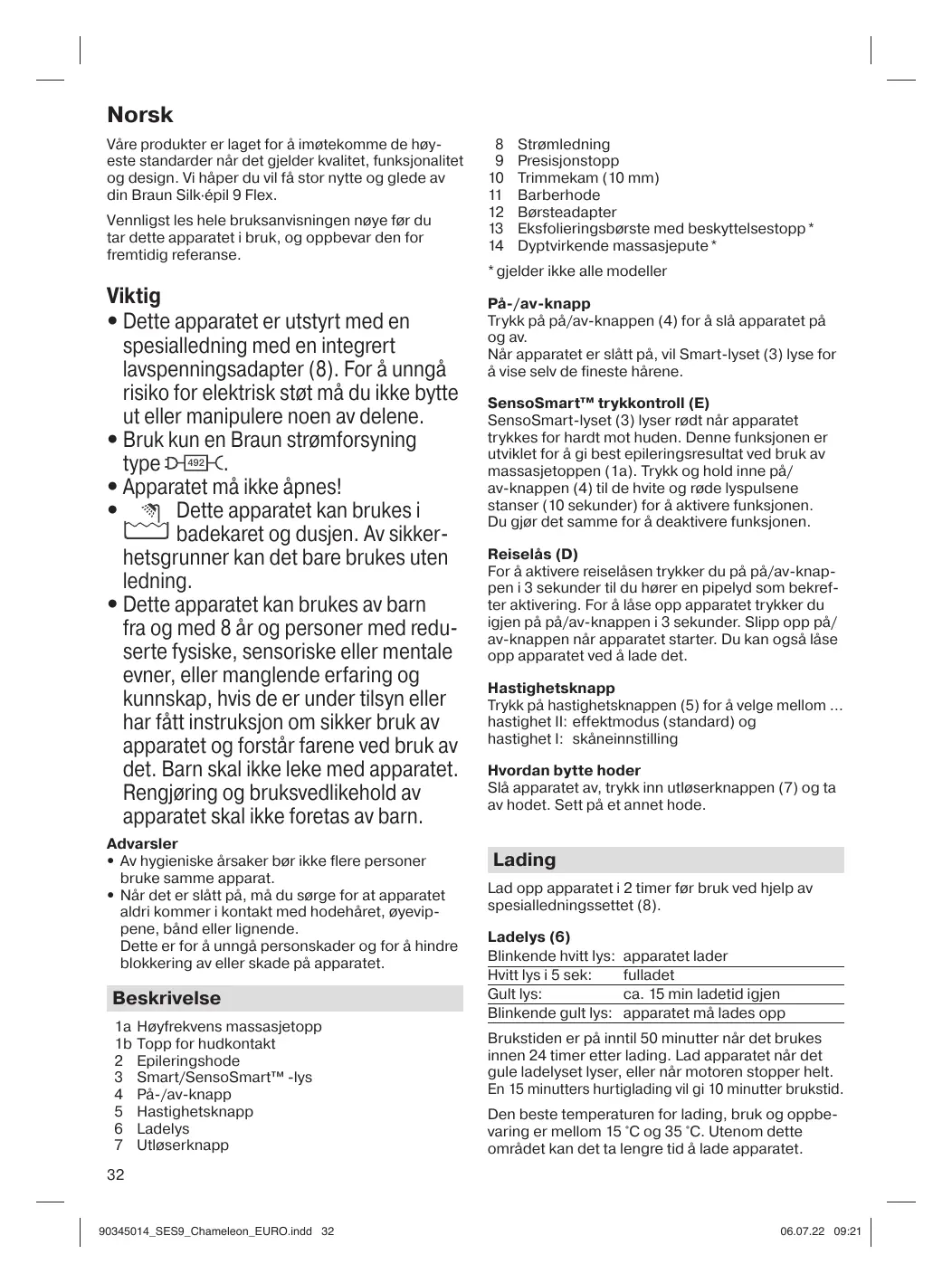 Vät bruk: Pass pà at huden er ordentlig vät, slik at apparatet har optimale glideforhold.