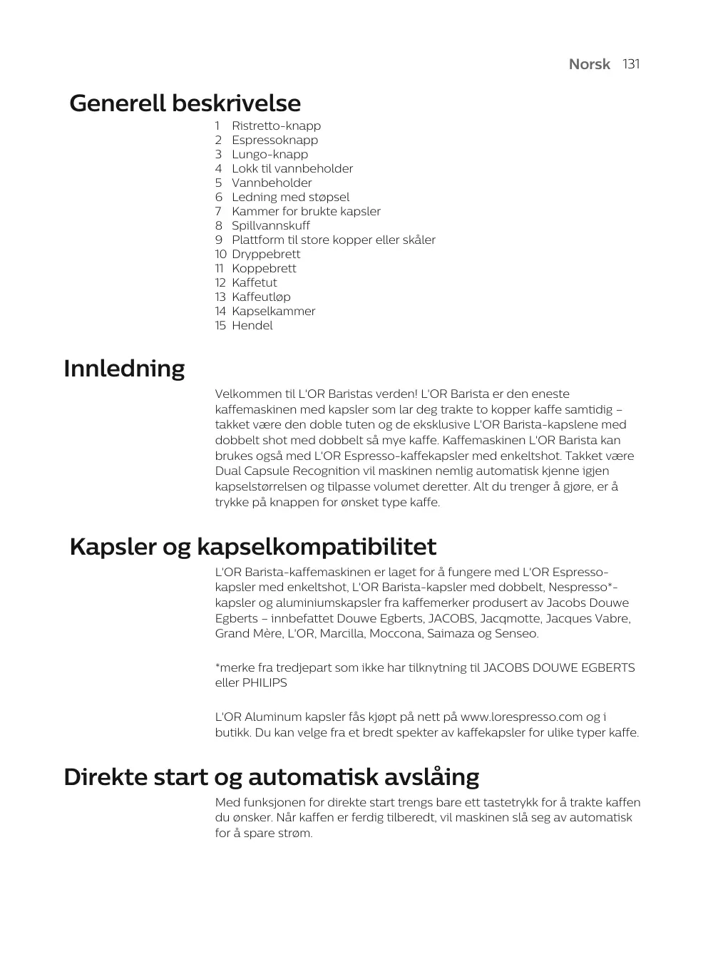 La machine à café L'OR Barista est conçue pour fonctionner avec les capsules simple dose L'OR Espresso et les capsules double dose L'OR Barista, ainsi qu'avec les capsules Nespresso” et les capsules en aluminium de marques de café produites par Jacobs Douwe Egberts, tels que Douwe