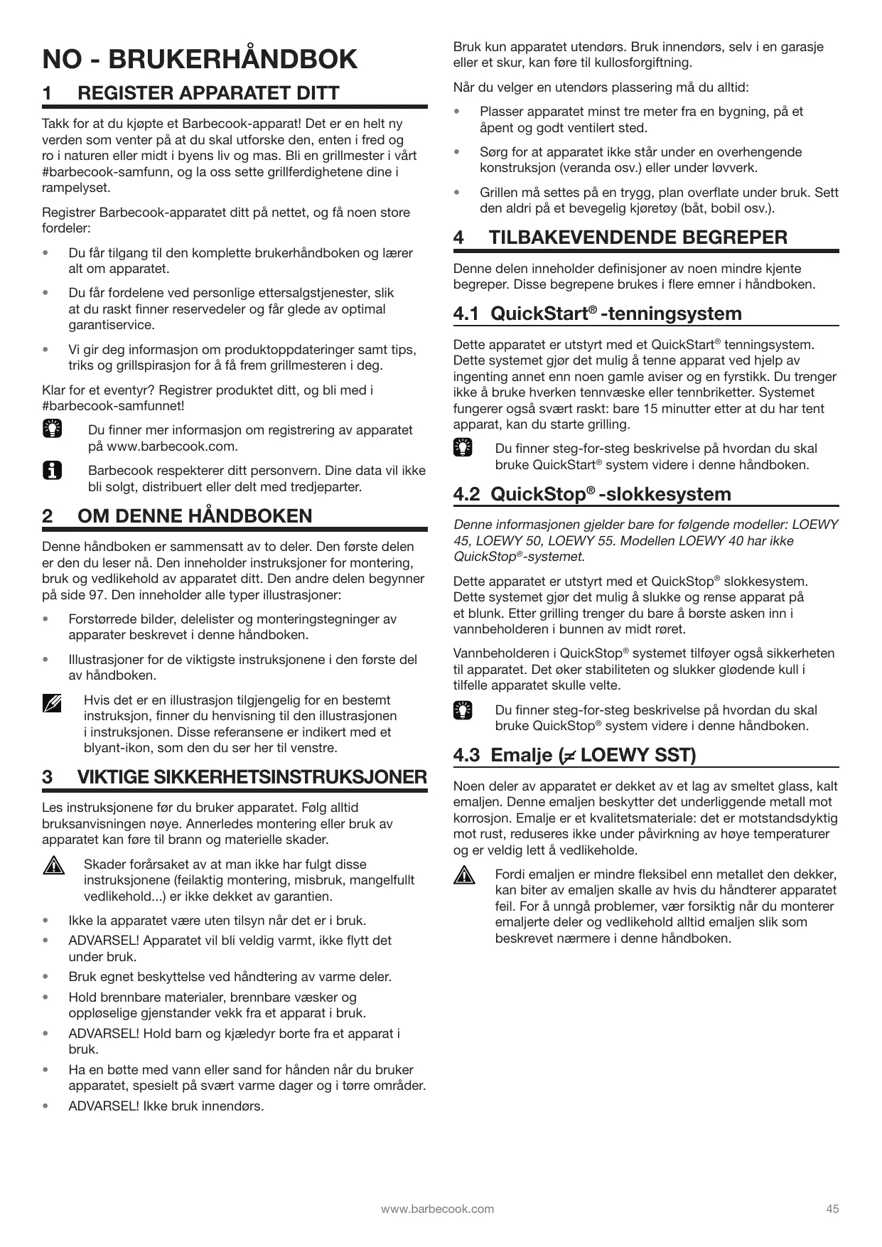 BRUKSANVISNING LOEWY 40, LOEWY 45, LOEWY 50 / 50 SST, LOEWY 55 / 55 SST BARBECOOK
