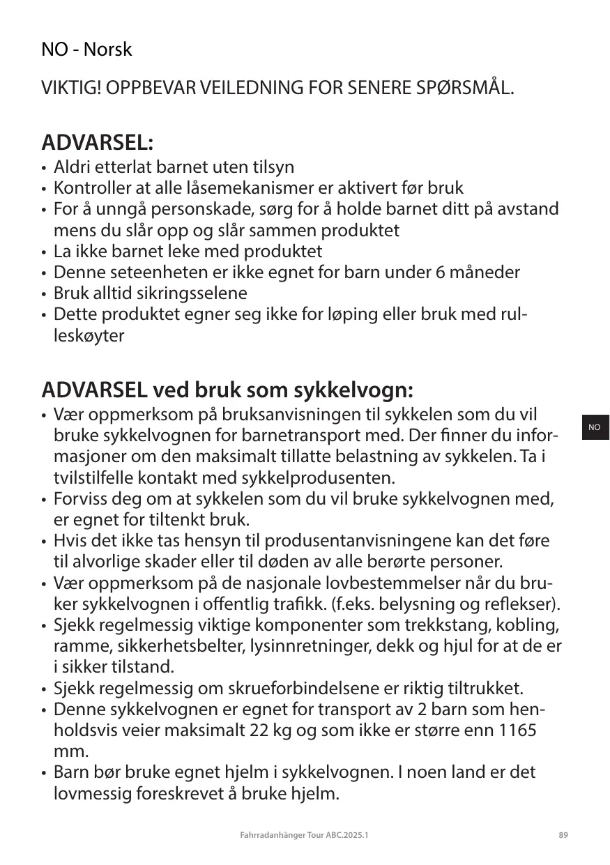 TOUR - REMORQUE A VELO ABC DESIGN - Notice d'utilisation et mode d'emploi gratuit