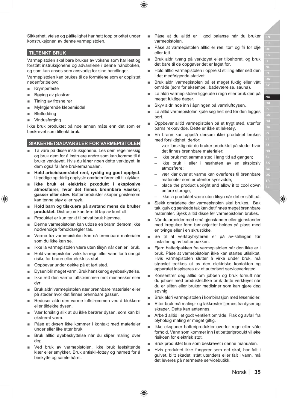 = Gardez le pistolet thermique éloigné de la pluie et de l'eau afin d'écarter tout risque d'incendie ou de décharge électrique.