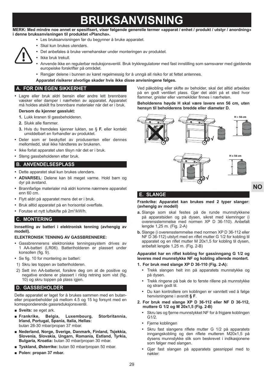 D. BOUTEILLE DE GAZ Cet appareil est réglé pour fonctionner avec les