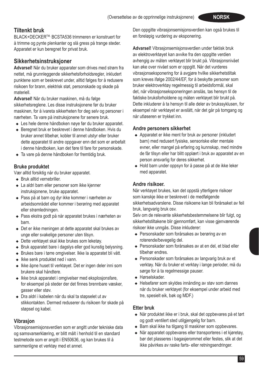 BRUKSANVISNING BCSTA536 BLACK & DECKER
