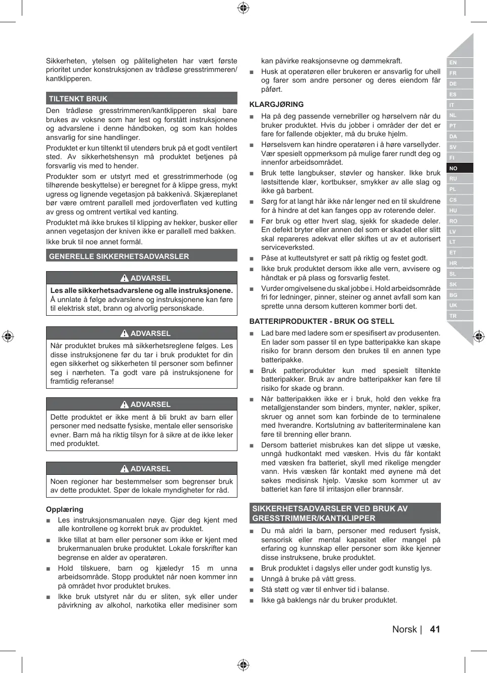 DE SÉCURITÉ CONCERNANT AZON/COUPE-BORDURE Ne laissez jamais les enfants, les personnes aux capacités physiques, sensorielles ou mentales réduites ou n'ayant pas l'habitude ou les connaissances suffisantes, ni les personnes non familiarisées avec ces instructions utiliser ce produit