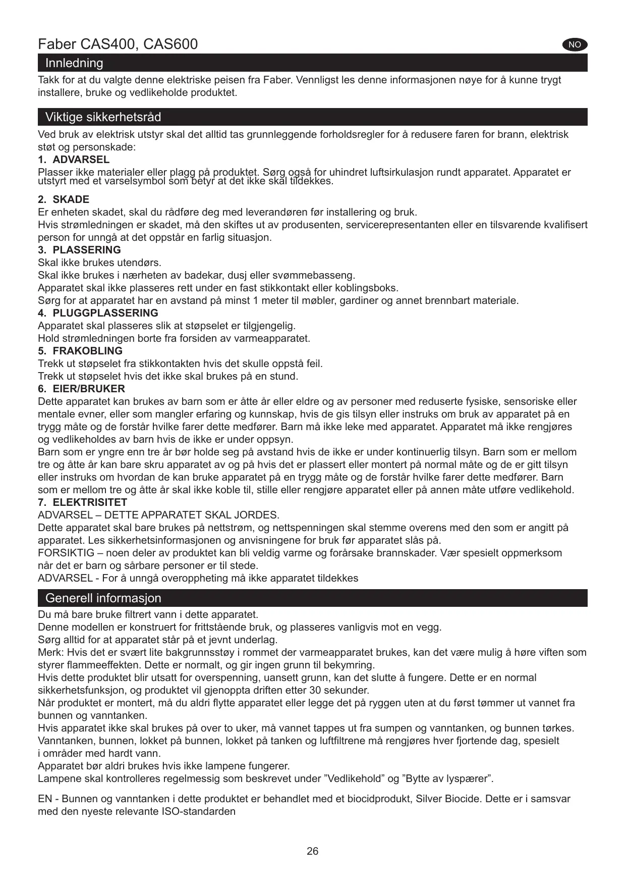 CAS400 - CAS600 - Elektrisk peis FABER - Notice d'utilisation et mode d'emploi gratuit