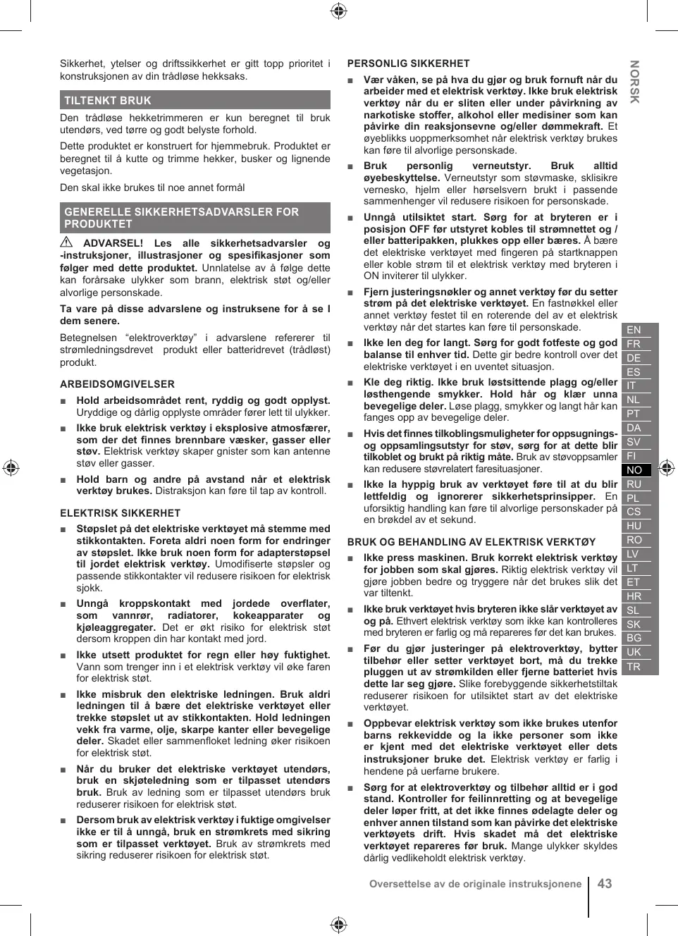 BRUKSANVISNING RY18HT45A - RY18HT50A RYOBI