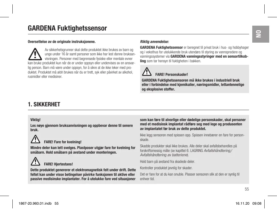 1867 - Capteur d'humidité GARDENA - Notice d'utilisation et mode d'emploi gratuit
