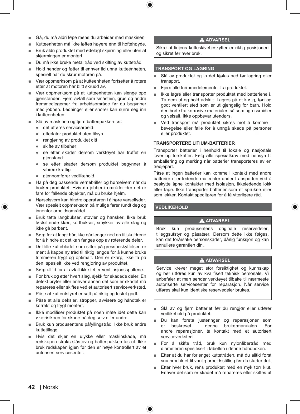 Lorsqu'il est équipé d'une tête de coupe-gazon (et des protections appropriées), le produit est conçu pour couper les herbes hautes, les mauvaises herbes épaisses et les végétaux similaires au niveau du sol, où à proximité. Le plan de coupe doit être approximativement parallèle à la surface du sol lors du débroussaillage et approximativement vertical lors de la coupe de bordure.
