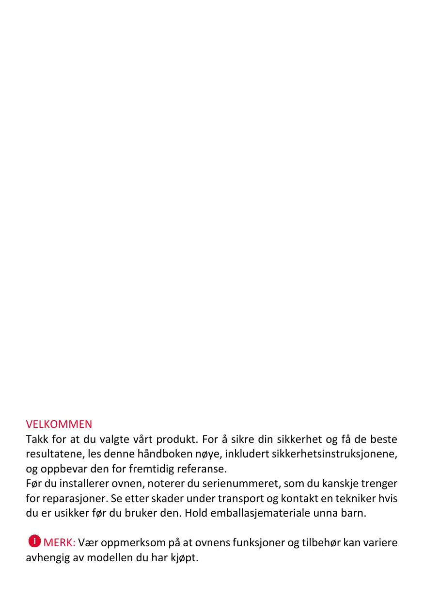 Utiliser le four uniquement aux fins prévues, à savoir pour cuire des aliments. Toute autre utilisation, par exemple comme source de chaleur, est considérée comme impropre et par conséquent dangereuse. Le fabricant ne peut être tenu pour responsable de tout dégât provoqué par un usage inadapté, incorrect ou déraisonnable.