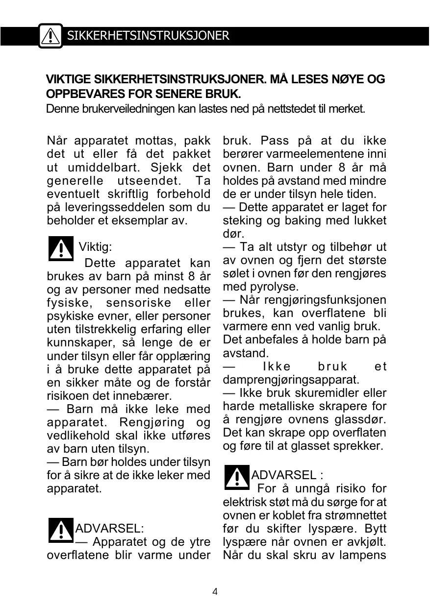 — Cet appareil est destiné à être utilisé dans des applications do- mestiques et analogues telles que les coins cuisines réservés au personnel des magasins, bureaux et autres environnements profes- sionnels; les fermes; l'utilisation par les clients des hôtels, motels et autres environnements à ca- ractère résidentiel; les environne- ments de type chambre d'hôtes. — Pour toute intervention de net- toyage dans la cavité du four, le four doit être arrêté.