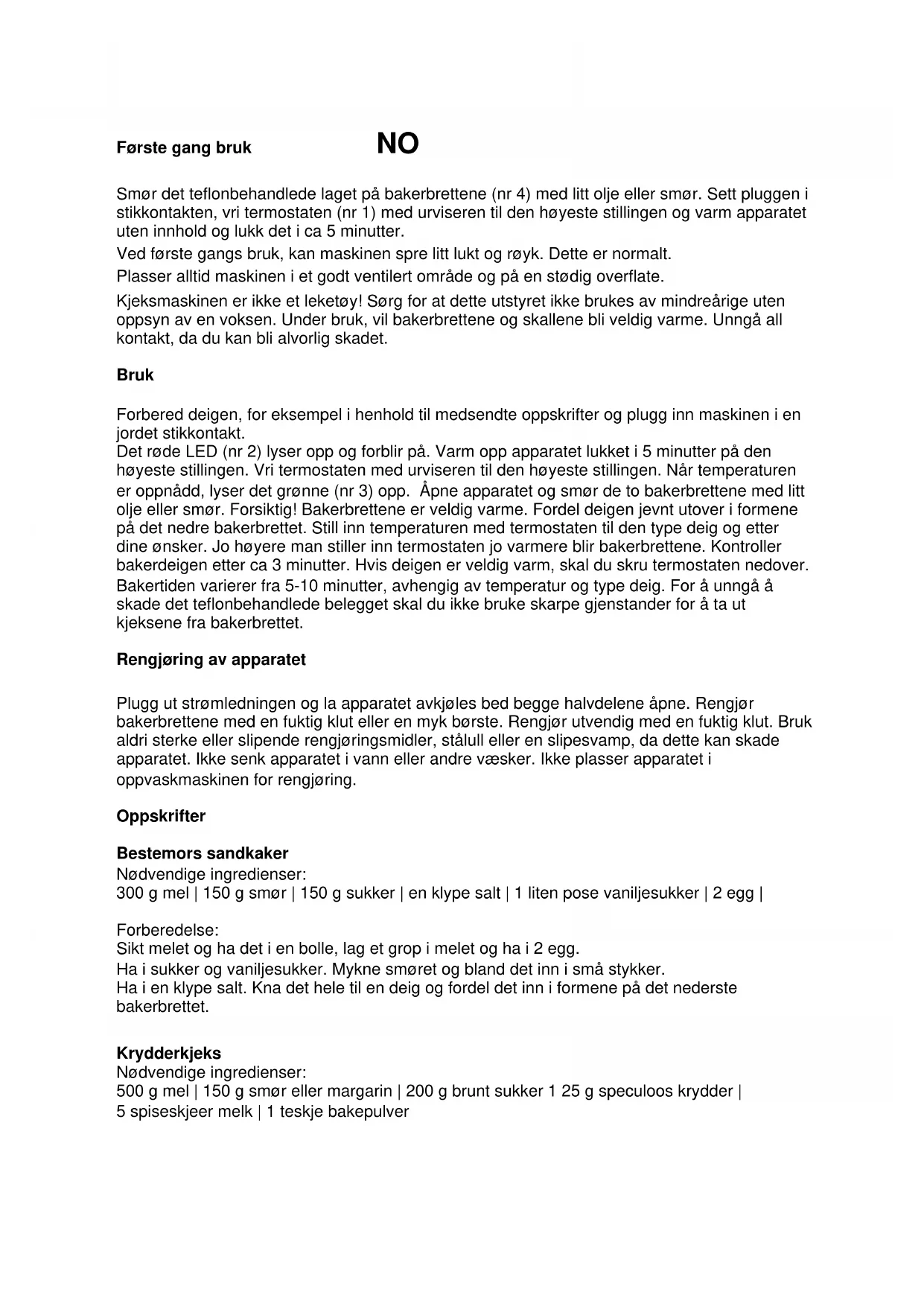 Kjeksmaskinen er ikke et leketøy! Sørg for at dette utstyret ikke brukes av mindreårige uten
