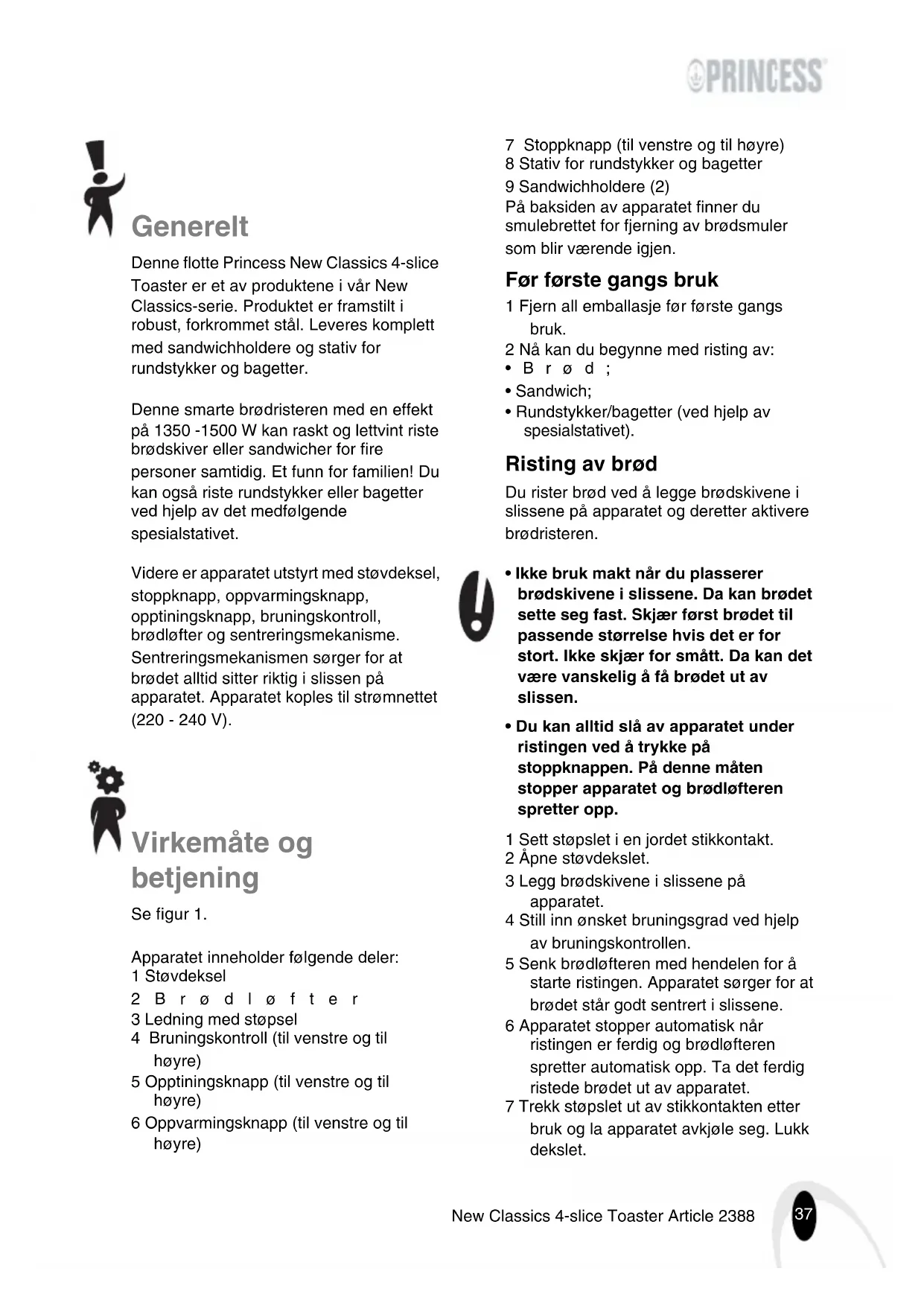 142388 - Brødrister PRINCESS - Notice d'utilisation et mode d'emploi gratuit