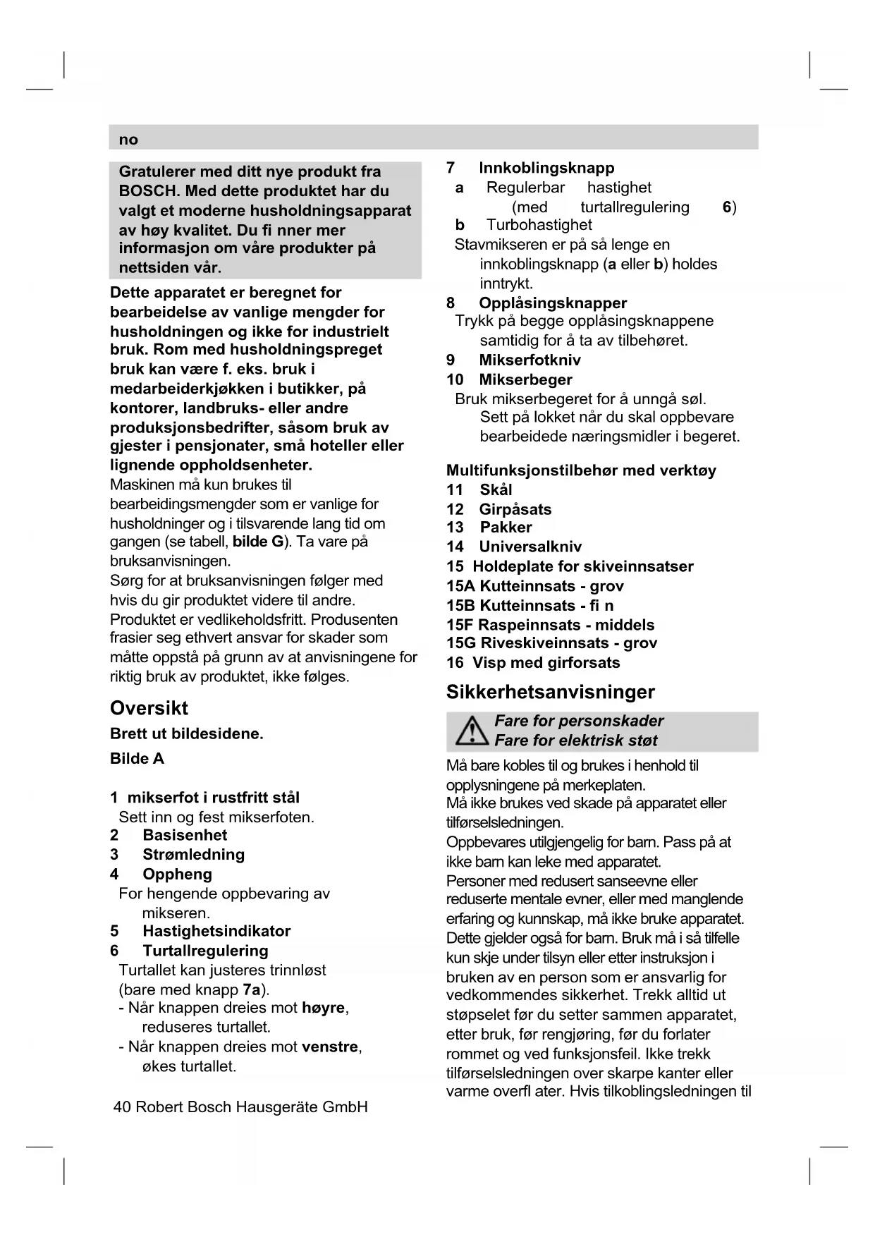 Mikseren må ikke senkes ned i væske over