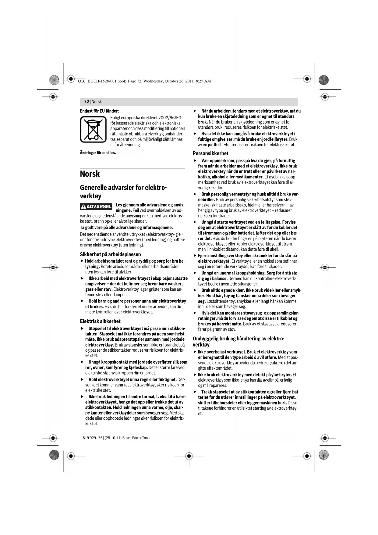 Bosch Power Tools 1 619 929 J75 | (26.10.11)