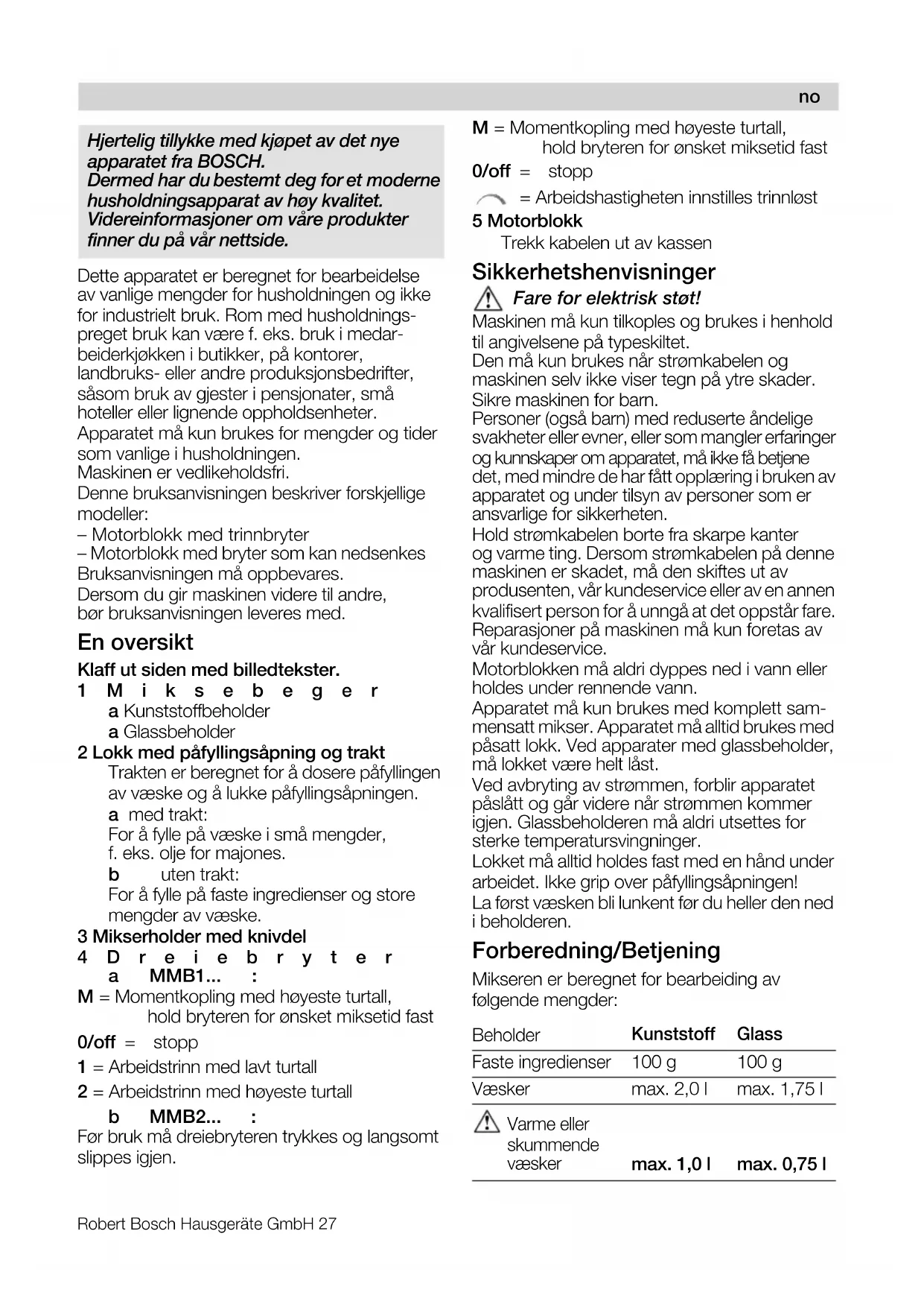 mensatt mikser. Apparatet må alltid brukes med