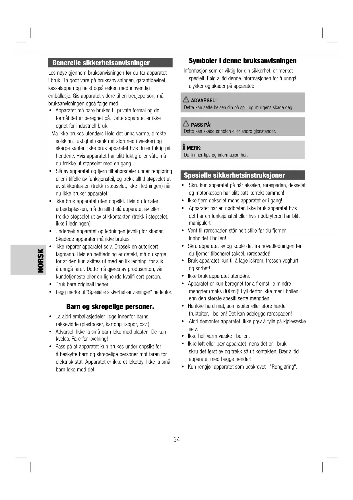 - Pass på at apparatet kun brukes under oppsikt for å beskytte barn og skrøpelige personer mot faren for elektrisk støt. Apparatet er ikke et leketøy! Ikke la små barn leke med det. Symboler i denne bruksanvisningen Informasjon som er viktig for din sikkerhet, er merket spesielt. Følg alltid denne informasjonen for å unngå ulykker og skader på apparatet: ADVARSEL! Dette kan sette helsen din på spill og muligens skade deg. PASS PÅ! Dette kan skade enheten eller andre gjenstander. MERK