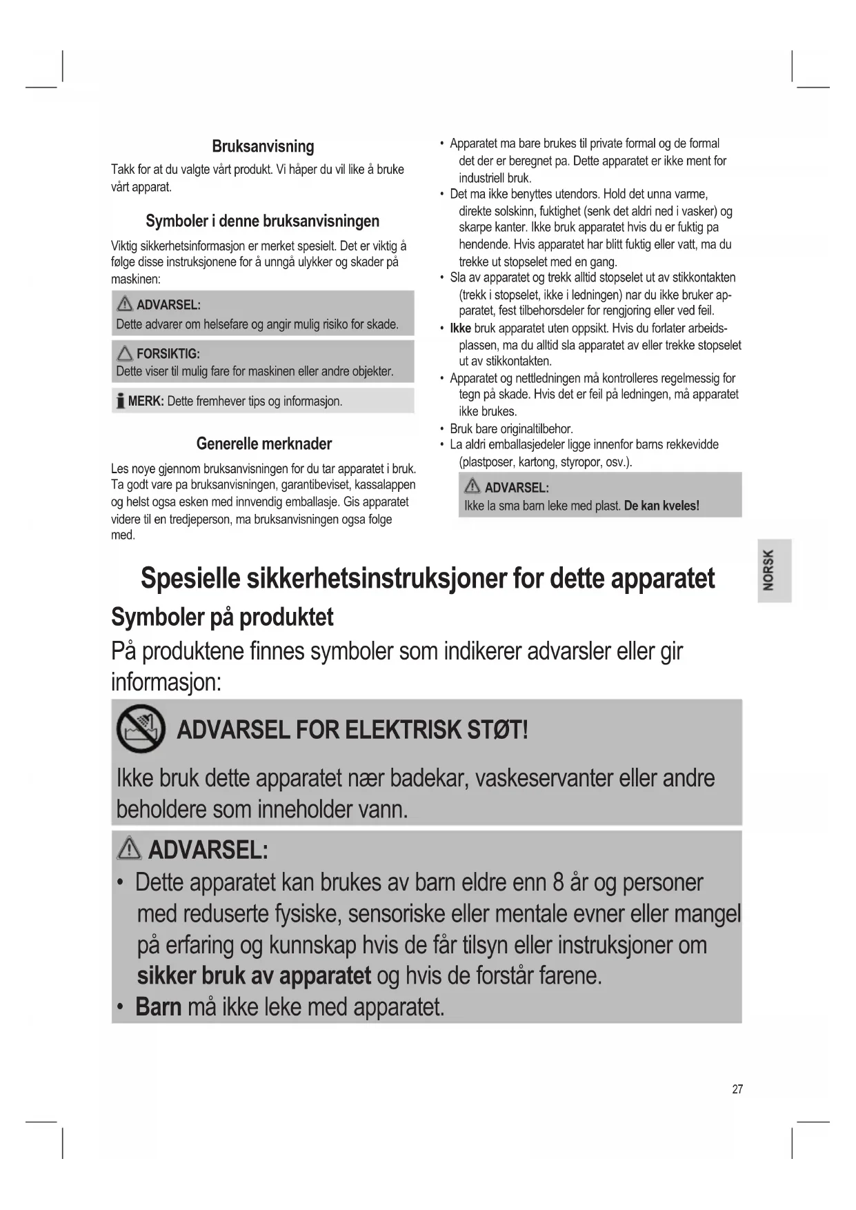 • Barn må ikke leke med apparatet.28