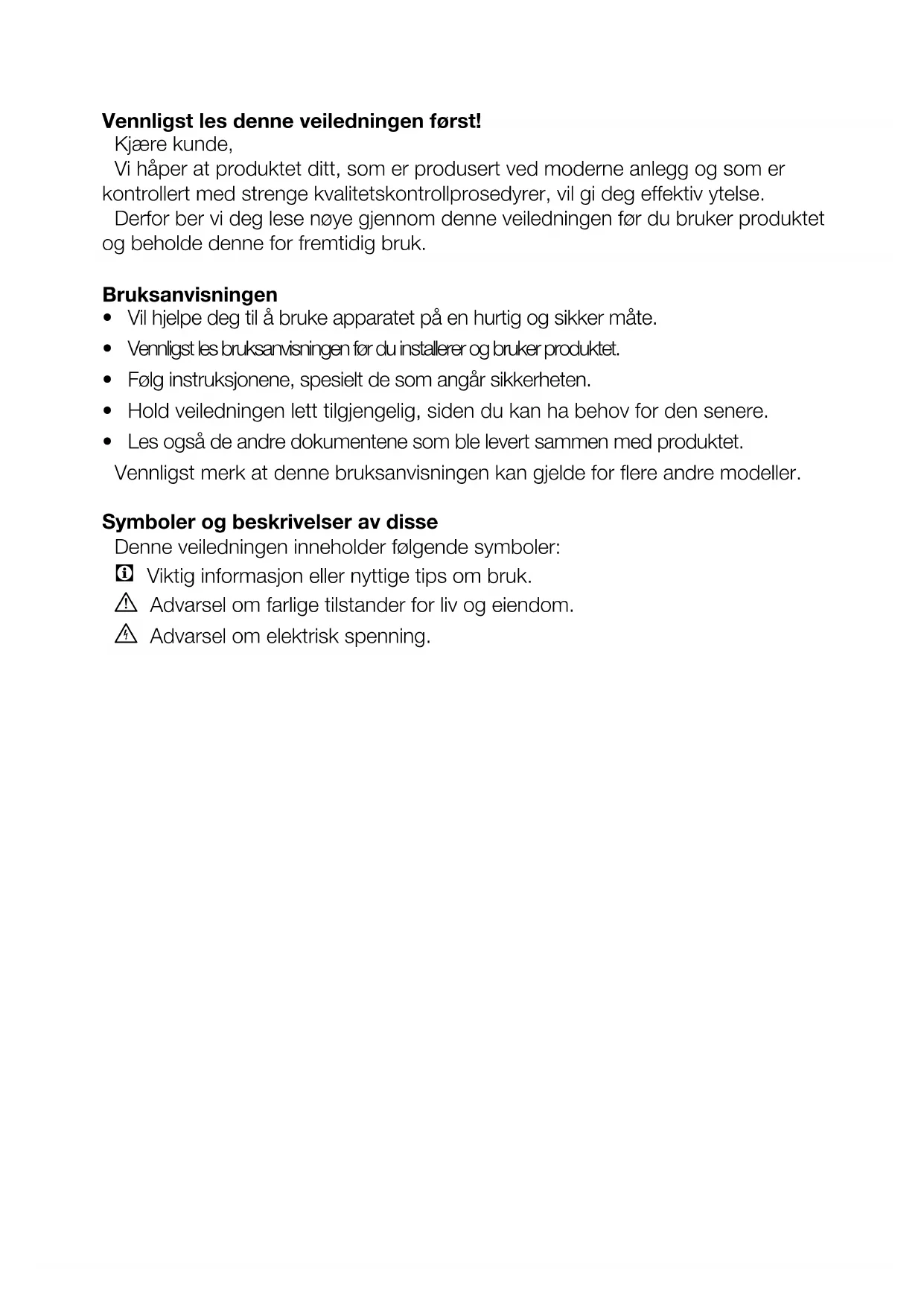 Derfor ber vi deg lese nøye gjennom denne veiledningen før du bruker produktet