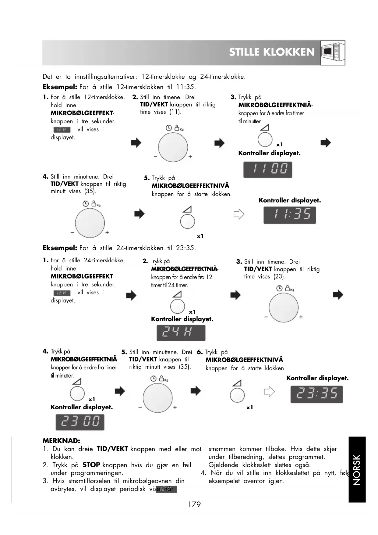 Mikrobølgeovnen bør holds under oppsyn mens den er i bruk. For hoye effektivær ell er for Lange tilberedningstider kan føre til overoppheting av matvarer og resultere i brann.
