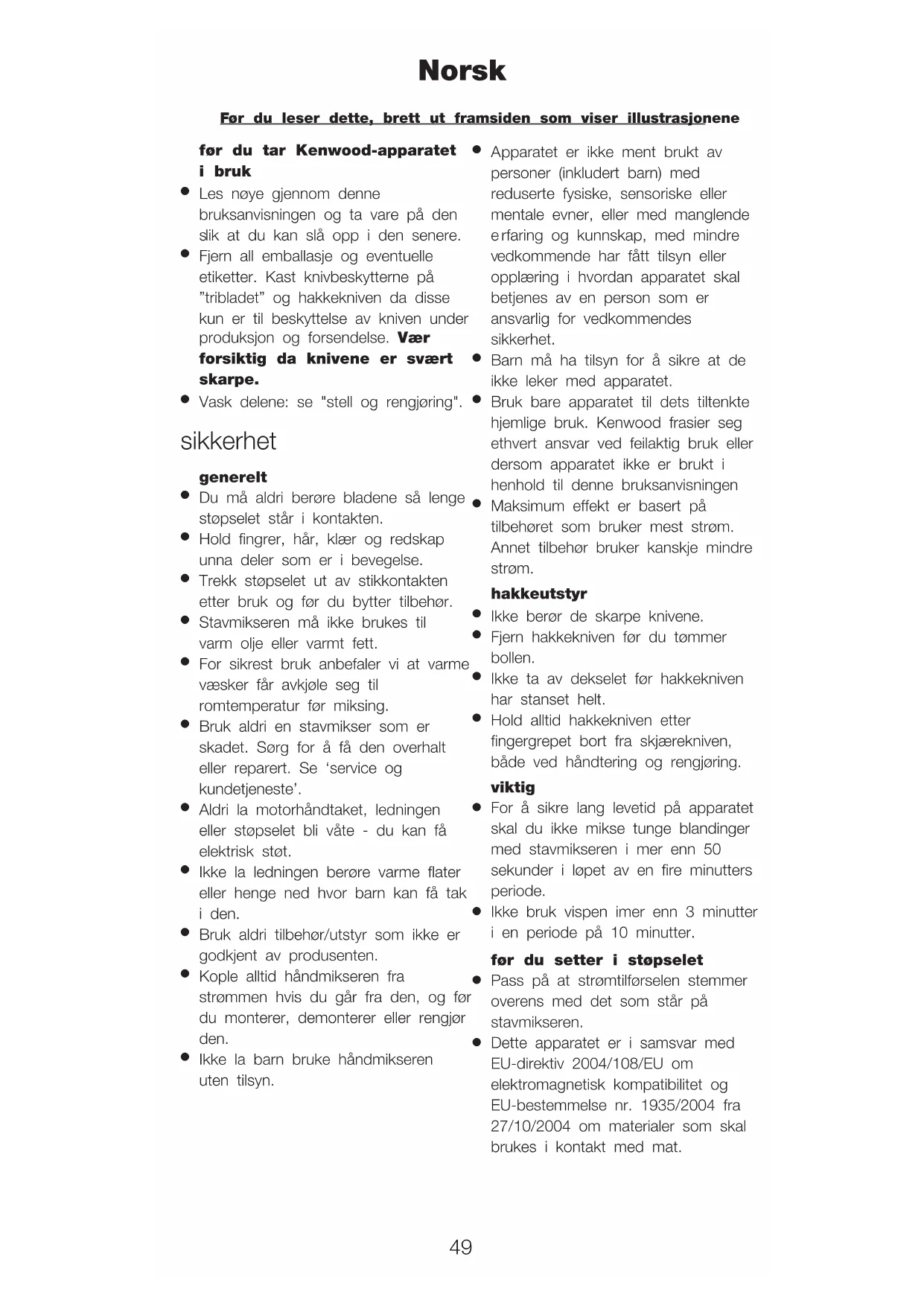 Stavmikseren må ikke brukes til
