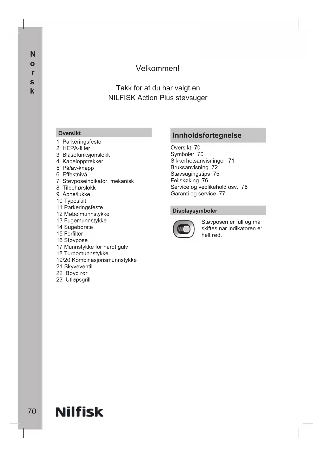 Action Plus Pet PACK - Støvsuger NILFISK - Notice d'utilisation et mode d'emploi gratuit