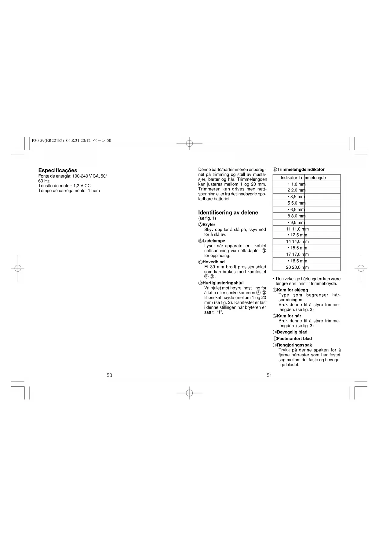 ER221 - Skjeggtrimmer PANASONIC - Notice d'utilisation et mode d'emploi gratuit