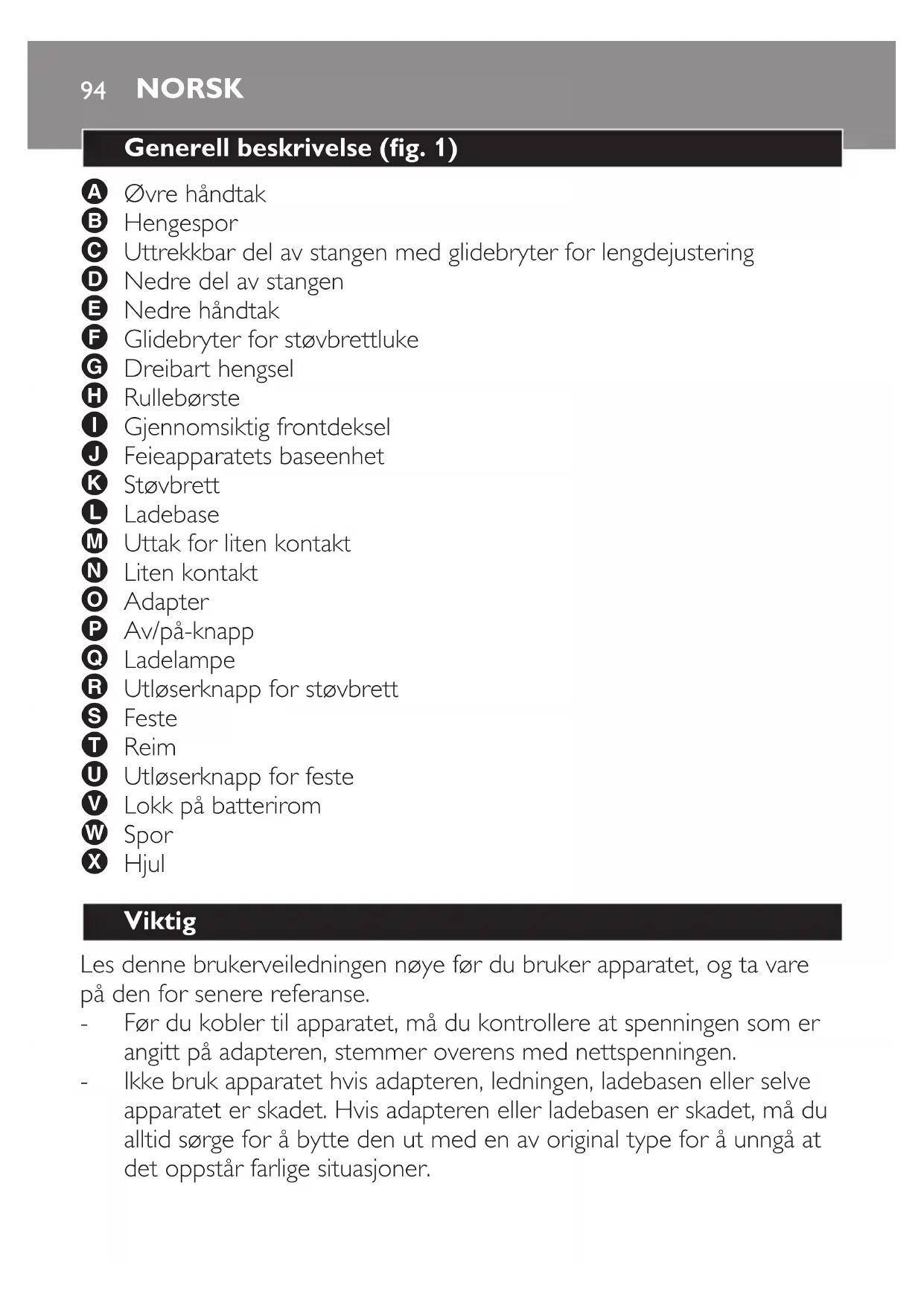 Les denne brukerveiledningen nøye før du bruker apparatet, og ta vare