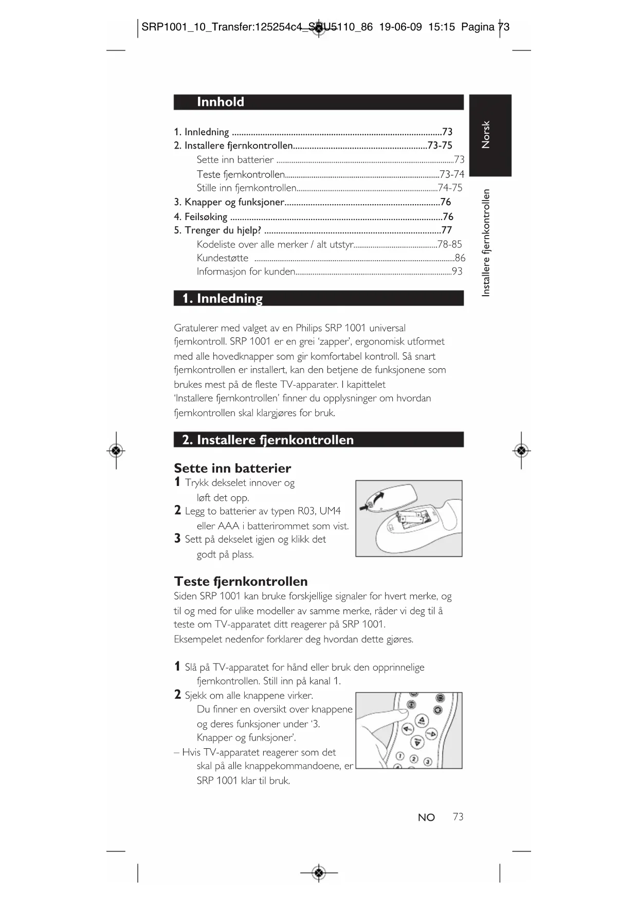 fjernkontrollen skal klargjøres for bruk.