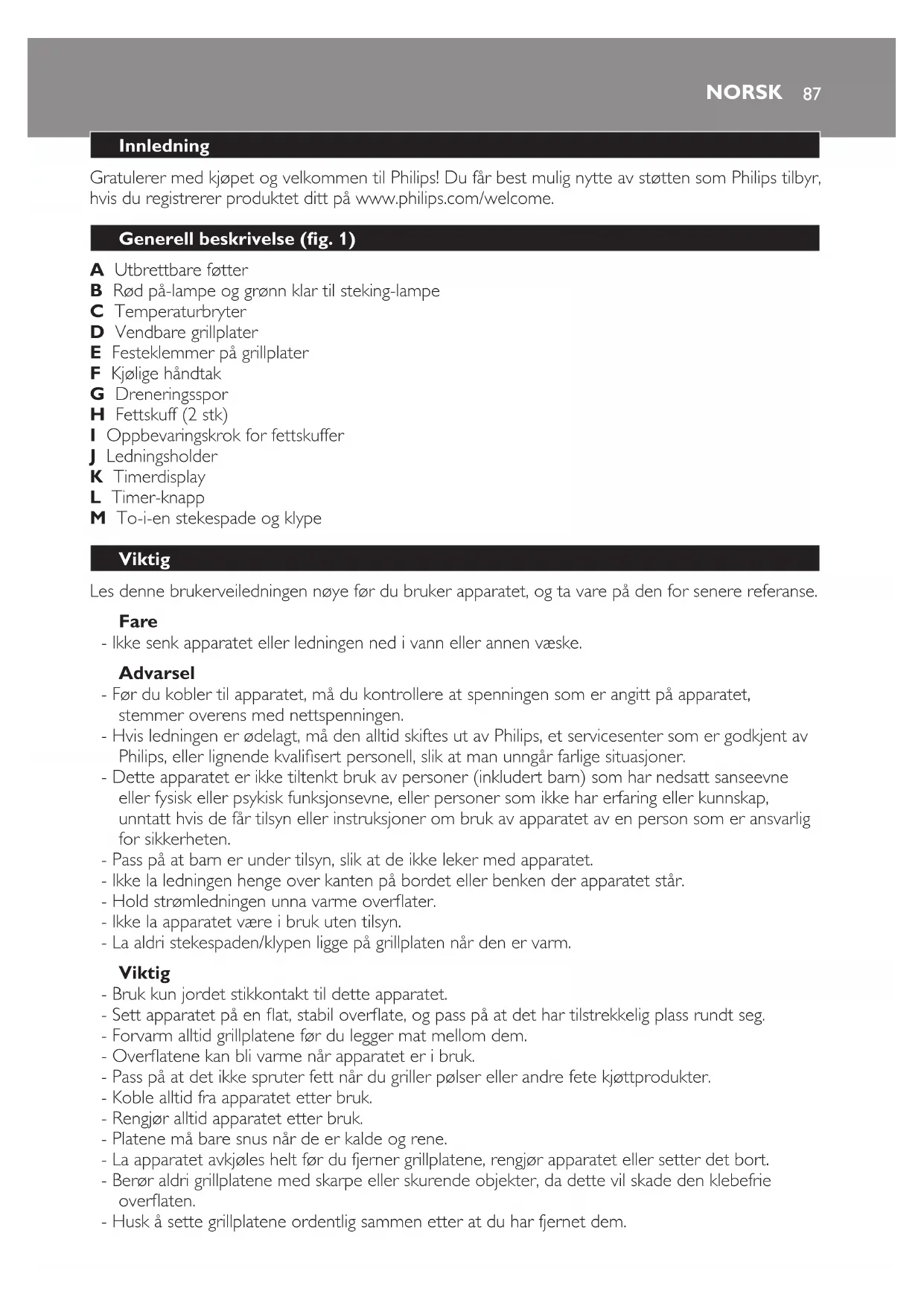 bruksanvisningen ikke følges, blir garantien ugyldig, og Philips påtar seg da ikke noe ansvar for