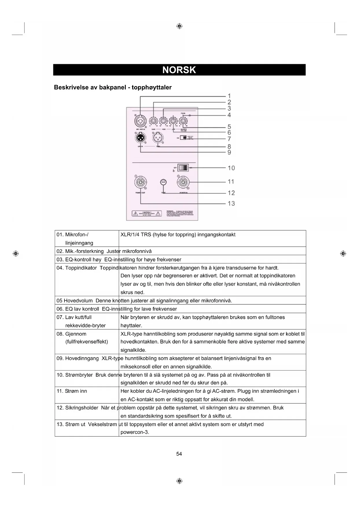 13. Strøm ut Vekselstrøm ut til toppsystem eller et annet aktivt system som er utstyrt med