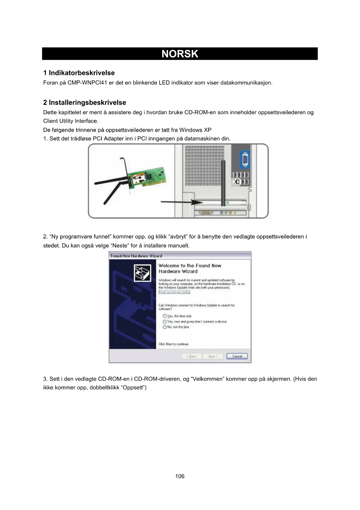 BRUKSANVISNING CMPWNPCI41 KONIG