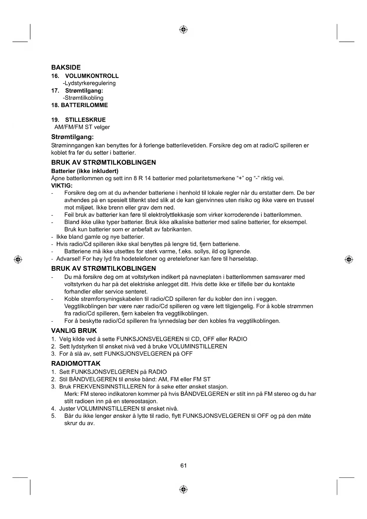 - Hvis radio/Cd spilleren/DDs ikke skal benyttes pa lengre tid, fjern batteriene.