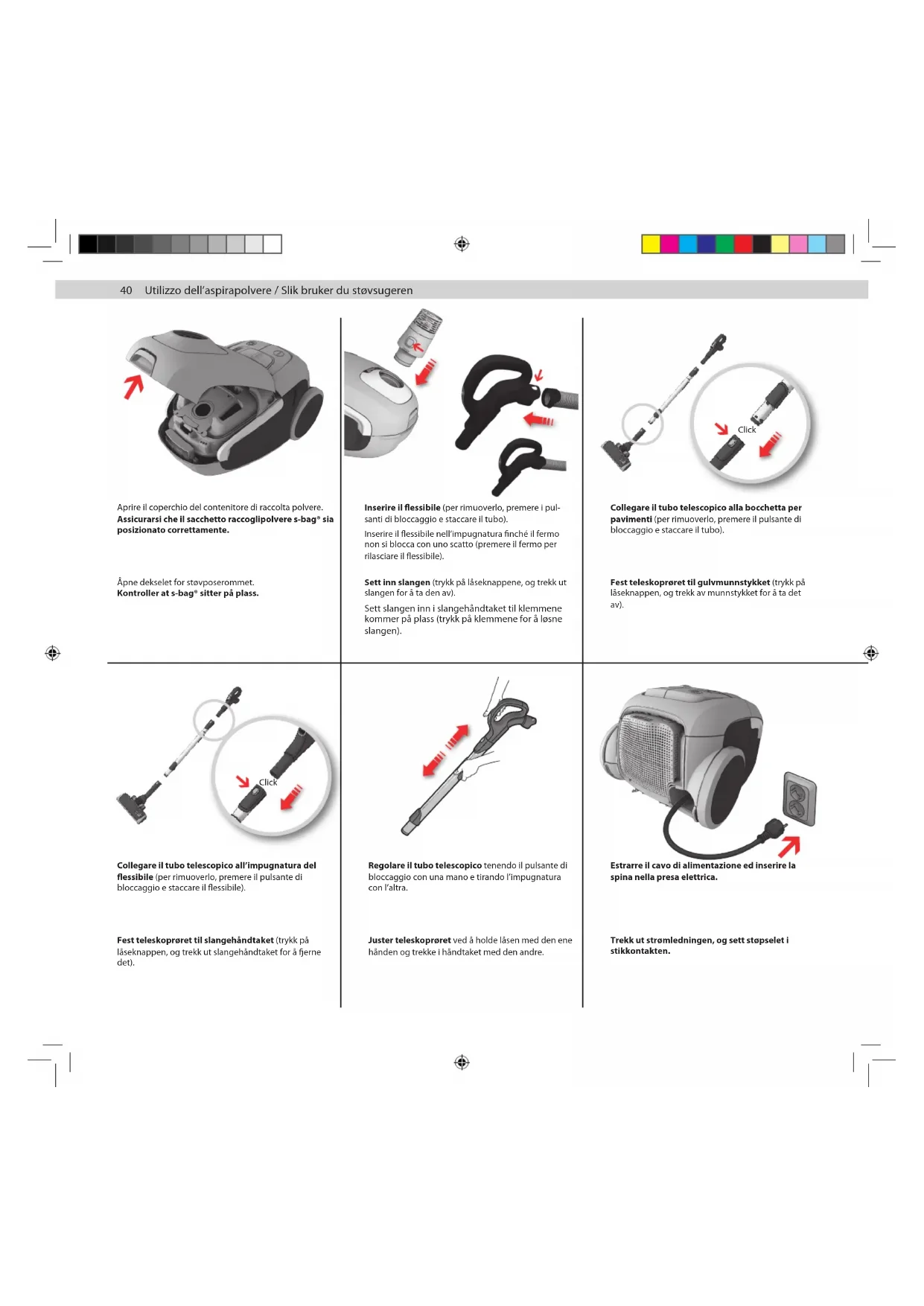Utilizzo dell’aspirapolvere / Slik bruker du støvsugeren