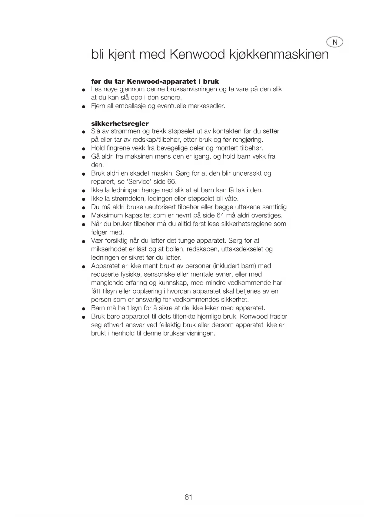 Bruk bare apparatet til dets tiltenkte hjemlige bruk. Kenwood frasier