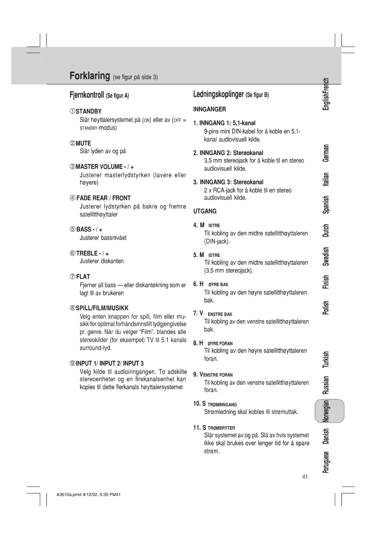 A3.610 - Høyttaler PHILIPS - Notice d'utilisation et mode d'emploi gratuit